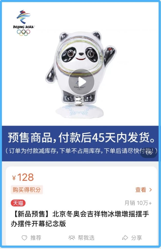 淘寶奧林匹克官方旗艦店冰墩墩搖擺手辦擺件開(kāi)幕紀(jì)念版月銷(xiāo)超10萬(wàn)