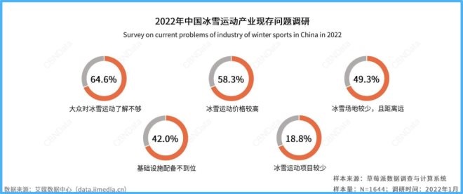 但在2015年以前,中國(guó)冰雪經(jīng)濟(jì)發(fā)展程度并不高。究其原因,iiMedia Research(艾媒咨詢(xún))調(diào)研數(shù)據(jù)顯示,64.6%的受訪(fǎng)者認(rèn)為制約冰雪運(yùn)動(dòng)進(jìn)一步普及的原因是“對(duì)冰雪運(yùn)動(dòng)了解不夠”,58.3%的受訪(fǎng)者則認(rèn)為“冰雪運(yùn)動(dòng)價(jià)格高”,“冰雪場(chǎng)地少,且距離遠(yuǎn)”則是受訪(fǎng)者提到第三多的原因。