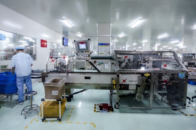 ▲珀萊雅生產(chǎn)工廠內(nèi)配料車間、制造車間與自動化包裝車間的生產(chǎn)設(shè)備均來自全球頂級制造商。(小六 攝)