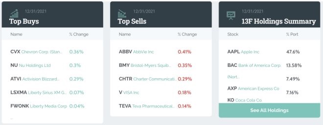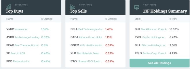 對(duì)于喜歡“抄作業(yè)”的投資者來(lái)說(shuō),“股神”巴菲特、各大主權(quán)基金、華爾街投行們的持倉(cāng)和調(diào)整情況不容錯(cuò)過(guò)。尤其是在2021年中概互聯(lián)網(wǎng)股票承壓的情況下,是趁機(jī)抄底還是保持距離,大機(jī)構(gòu)的動(dòng)作有很高的參考價(jià)值。