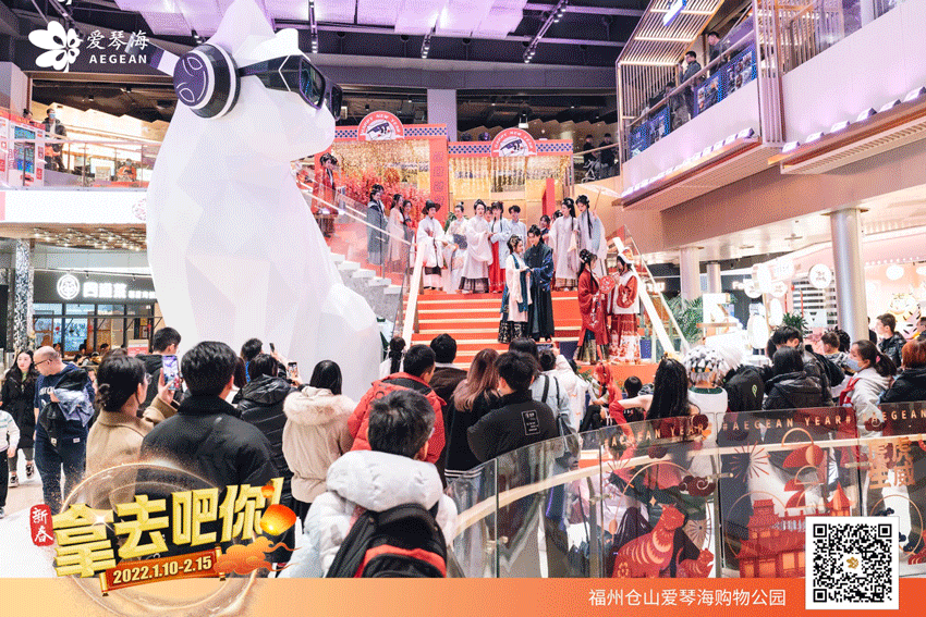 說到國風(fēng),肯定少不了漢服和國舞。福州倉山愛琴海購物公園打造奇喵國風(fēng)游園會,設(shè)立7大國風(fēng)游園點位,每日舉行漢服大巡游和國風(fēng)舞蹈快閃,豐富了國風(fēng)文化的展現(xiàn)形式,讓傳統(tǒng)與現(xiàn)實并存,在當(dāng)?shù)叵破鹆艘粓鰢L(fēng)熱潮。春節(jié)期間,吸引了超過30萬的消費者來游園打卡。