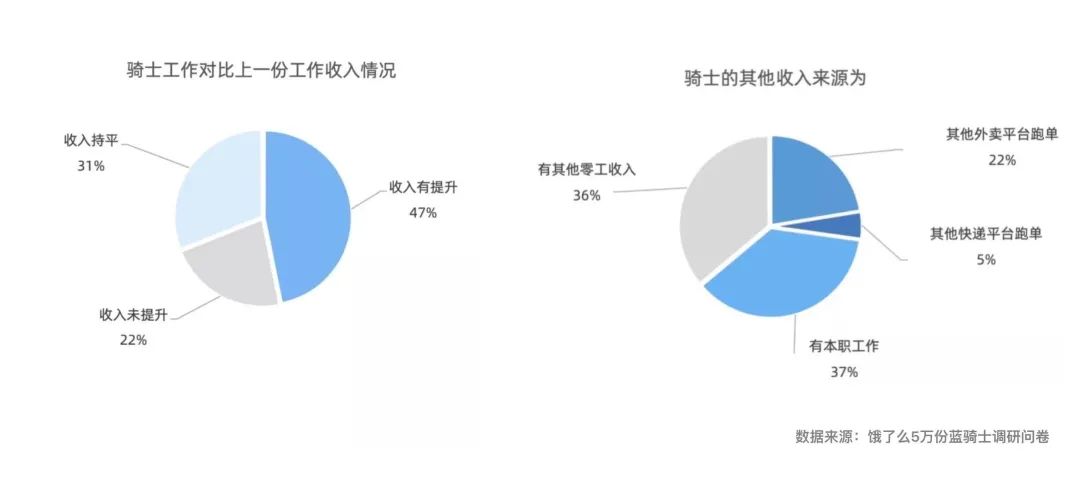 2月14日,餓了么發(fā)布《2022藍(lán)騎士發(fā)展與保障報(bào)告》,其中顯示,去年共有114萬(wàn)騎士在餓了么平臺(tái)獲得穩(wěn)定收入,近四成騎手擁有本職工作。同樣,數(shù)據(jù)顯示,2020年上半年,美團(tuán)平臺(tái)上近四成騎手有其他工作,其中28%為工廠工人。