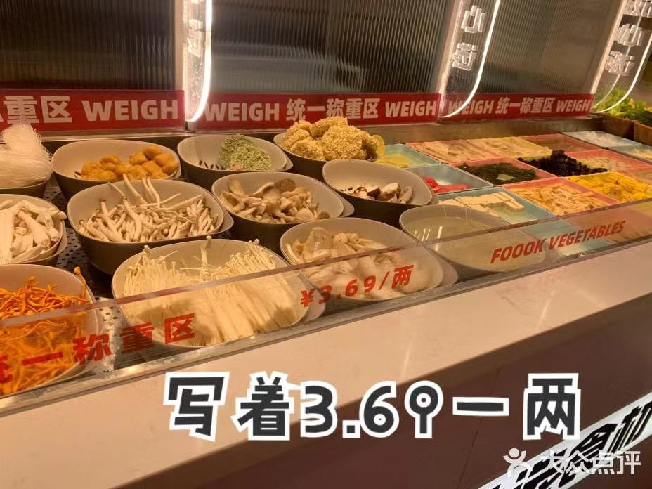 但通常你對(duì)“30元/斤”根本沒(méi)啥概念,二三十個(gè)大水盆里飄著五顏六色的蔬菜,每種夾幾片也不算多吧,想著再吃點(diǎn)肉葷素搭配,三片烏雞卷和兩片裹著厚重調(diào)料的牛肉已經(jīng)相當(dāng)克制,再加兩個(gè)工業(yè)牛肉丸聊勝于無(wú)。