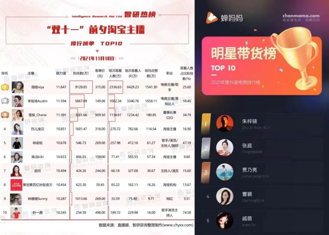 林依輪和戚薇分別為淘寶直播和抖音直播的頭部主播