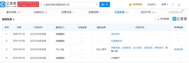 企查查APP顯示,樂樂茶目前有4輪融資記錄,其最近一次是在2020年7月。目前,樂樂茶共有98家直營店。