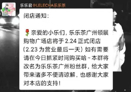樂樂茶廣州最后一家門店停業(yè),徹底退出華南市場