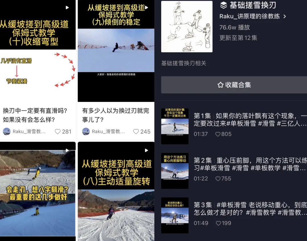 阿徐告訴極客公園,剛剛?cè)ゲ痪,他就想離開,但是想到單干也需要積累客源,就多呆了一陣。第二年,他開始運(yùn)營自己的小紅書賬號(hào),發(fā)布一些教學(xué)內(nèi)容,雪季中途,就離開雪場,成為一名獨(dú)立教練,F(xiàn)在他還同時(shí)運(yùn)營自己的抖音賬號(hào)。