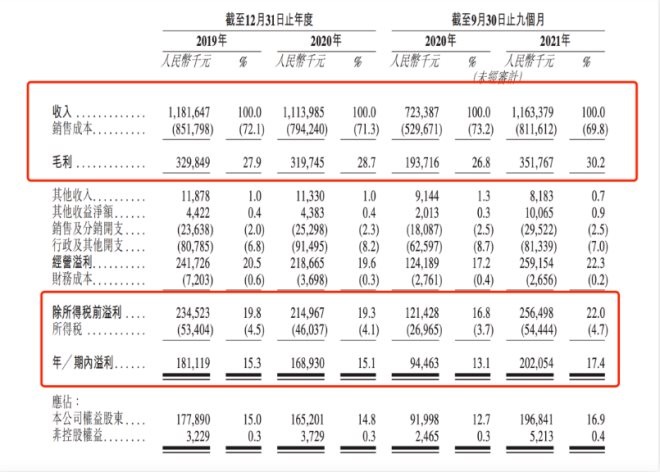 賣麻辣燙能賺多少錢?我們從招股書可以看到,「楊國!沟穆槔睜C生意較為穩(wěn)定。其2019年全年、2020年全年及2021年前三個季度營收分別為11.8億元、11.1億元及11.6億元,對應(yīng)凈利潤1.8億元、1.7億元及2億元。