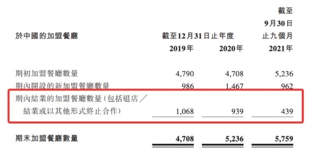 招股書內(nèi)解釋,加盟餐廳退店的主要原因一方面是經(jīng)營不善,另一方面是不符合楊國福要求被終止合作。