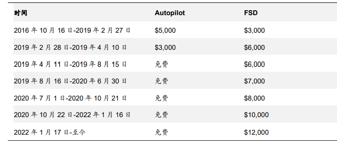 圖:特斯拉FSD收費(fèi)提升表(來源:特斯拉,國信證券經(jīng)濟(jì)研究所)