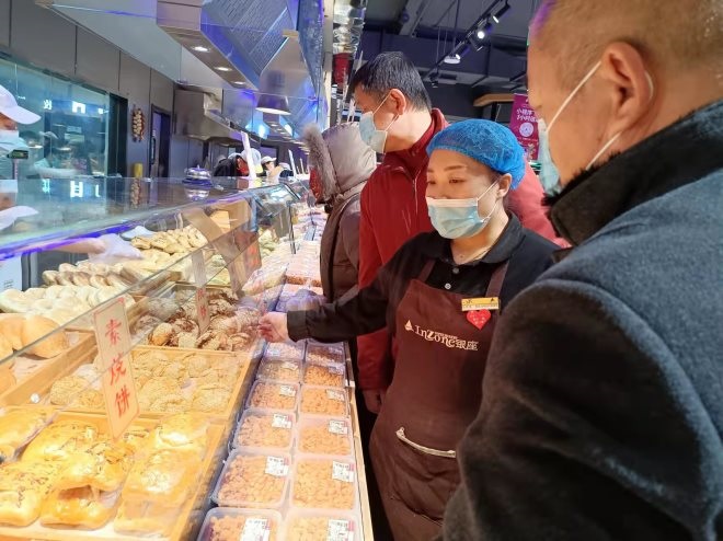 有位老顧客,每十余天會來選購四十多個紅豆餅,在溫情互動中,陳克美得知紅豆餅對顧客而言口感微甜且每次免不了等候。她便主動留下自己的電話,調(diào)低糖分含量提前完成定制,老顧客到店即取;有位膠東阿姨,年前來購買膠東大饃饃,可數(shù)量不夠,陳克美主動聯(lián)系廠家卻得知已停止制作。望向那雙失望遺憾的眼神,她帶領(lǐng)團隊擼起袖子開始制作,反復(fù)研制后送貨上門,這份意料之外的新春驚喜贏得了顧客的高度認(rèn)可。