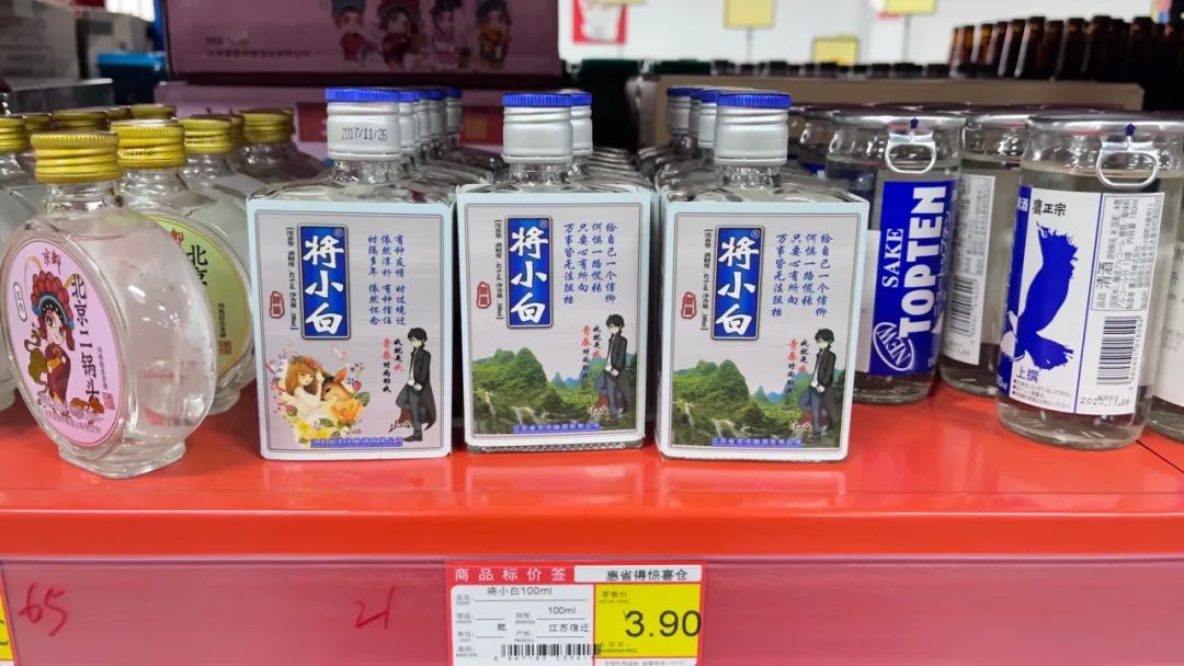 不僅如此,在逛店時(shí),《壹覽商業(yè)》發(fā)現(xiàn)在貨架上還擺放著一些“山寨貨”,規(guī)格大抵相似,但在價(jià)格上則與真品牌相差甚遠(yuǎn)。比如,江小白與“將小白”、奧利奧與“奧利碎”、梅見與“梅夏”等。
