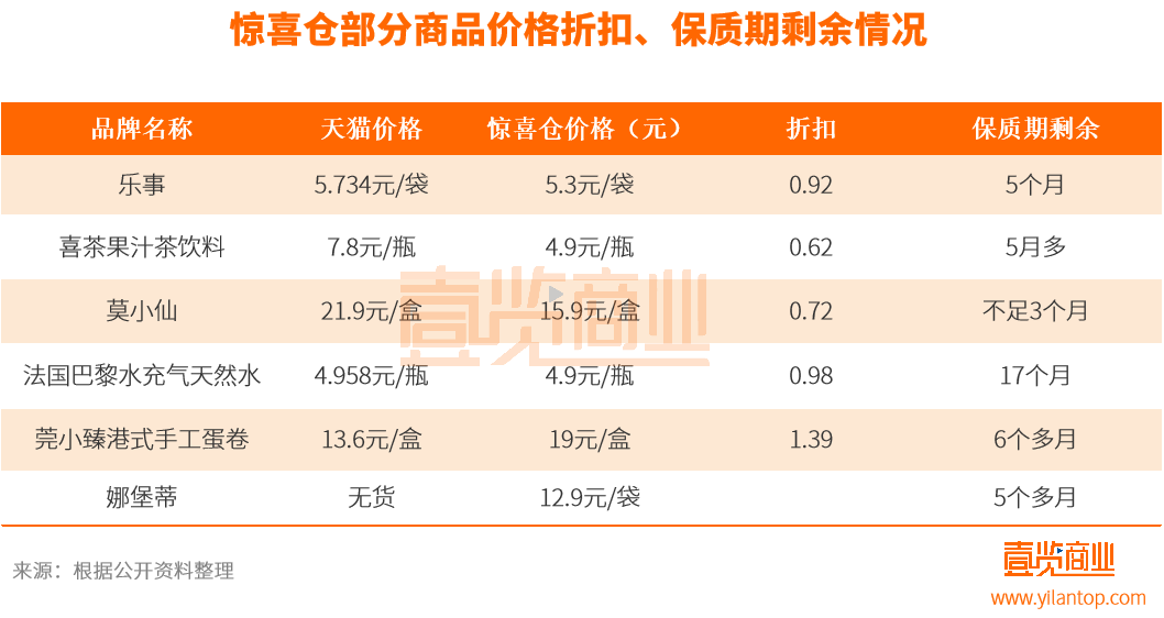 至于折扣,《壹覽商業(yè)》在驚喜倉選了幾款商品,將其價(jià)格與天貓超市價(jià)格做了對比,發(fā)現(xiàn)一些知名品牌價(jià)格并不算很便宜,其中,保質(zhì)期還有五個(gè)月的70克規(guī)格的樂事薯片在驚喜倉售價(jià)為5.3元,天貓正常保質(zhì)期售價(jià)5.734元。另外,一些雜牌甚至在天貓上搜尋不到相關(guān)商品。