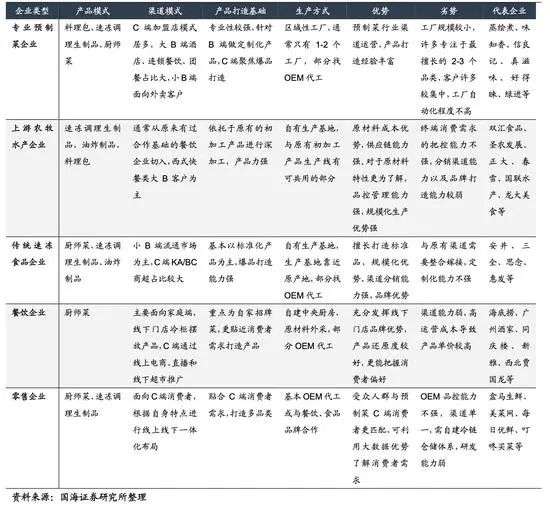 毫無疑問,預(yù)制菜已然成為消費(fèi)市場的新風(fēng)口,五大玩家們(專業(yè)預(yù)制菜企業(yè)、上游農(nóng)牧水產(chǎn)類企業(yè)、傳統(tǒng)速凍食品企業(yè)、餐飲企業(yè)、零售企業(yè)在預(yù)制菜行業(yè)內(nèi)的爭奪戰(zhàn)愈演愈烈,歸根結(jié)底,還得看企業(yè)產(chǎn)能、產(chǎn)量、經(jīng)營規(guī)模、物流配送能力。