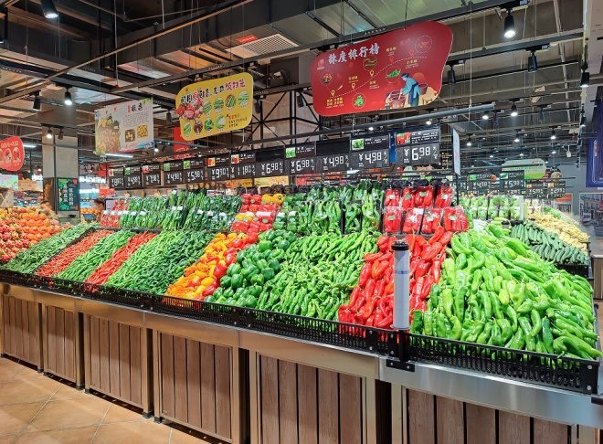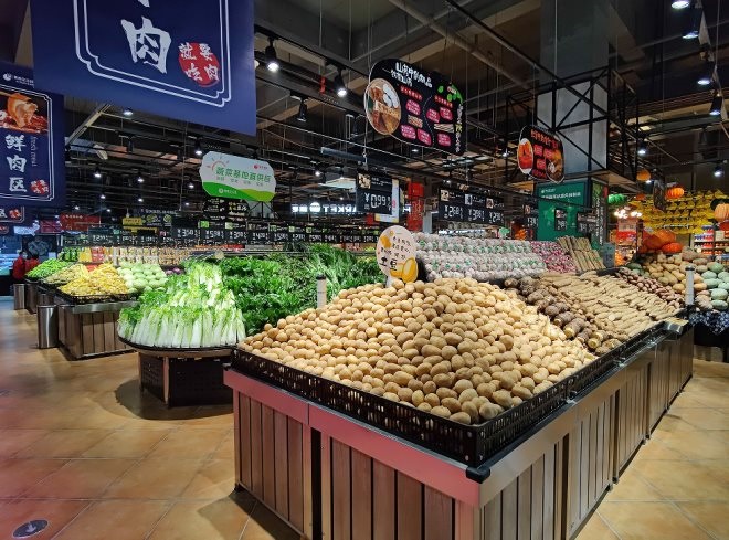1、按品類管理打造蔬菜、水果、肉品等目標(biāo)性品類,并營(yíng)造九大生活主題區(qū):遇見(jiàn)花開(kāi)、休閑酒吧、美食中心、海鮮工坊、蔬果中心、零食中心、飲品館、護(hù)理美妝、廚房中心,商品品種豐富、豐滿、齊全,商品陳列雅致、新穎。