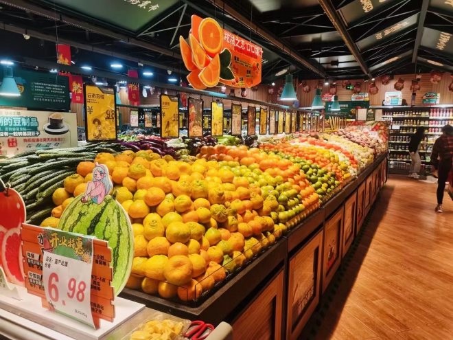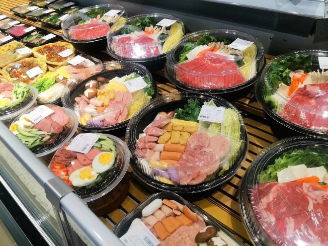 超市內(nèi)劃分不同的場景區(qū)域,做出明顯區(qū)別度,增加顧客體驗(yàn)感;尤其生鮮熟品類面積占比50%+;結(jié)合生活美學(xué)陳列情景+體驗(yàn)打造更加符合目前顧客對購物環(huán)境的需求,也契合購物中心打造潮流、有趣的購物街區(qū)的主題。