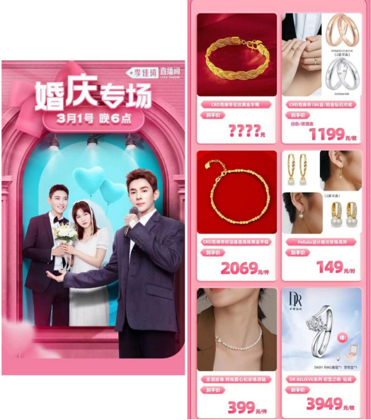 斬獲28.25億的李佳琦自然不可能放下火熱的市場(chǎng)反饋,馬上又在3月1號(hào)開始第二場(chǎng)3.8女神節(jié)活動(dòng)。這次他把目光放在了單價(jià)更高的單品:珠寶鉆戒。