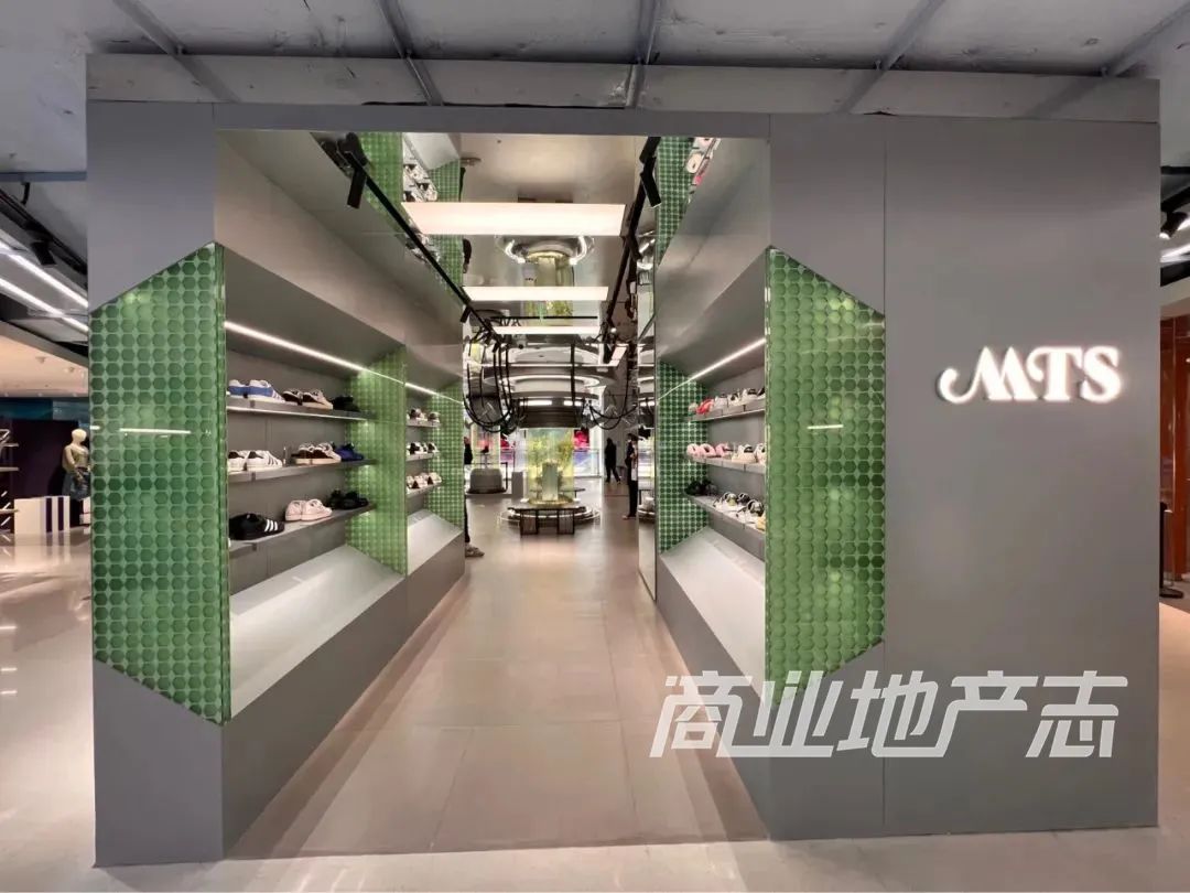 潮玩手辦相臨的區(qū)域,是潮流鞋履區(qū)MTS。用工廠貨架的設(shè)計理念呈現(xiàn)所售的19個潮流、小眾、人氣熱牌,達(dá)到了空間聯(lián)動的目的。