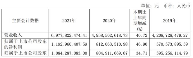 日前,東鵬飲料發(fā)布上市后首份年報。2021年,東鵬飲料實現(xiàn)營收約69.78億元,同比增長40.72%;歸屬于上市公司股東的凈利潤為11.93億元,同比增長46.9%;歸屬于上市公司股東的凈資產(chǎn)42.38億元,同比增長121.51%。作為對比,同行業(yè)飲料制造公司平均營收增速為21.21%,平均凈利潤增速為20.18%。