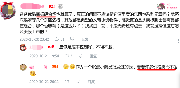 “同款小剪刀在名創(chuàng)優(yōu)品9.9,但在淘特上只有2.9還包郵。他家東西買不了吃虧,但也買不了真香。”在部分90后消費者眼中,名創(chuàng)優(yōu)品不僅“低質(zhì)”問題屢見不鮮,連“超高性價比”的魅力也消失殆盡了。