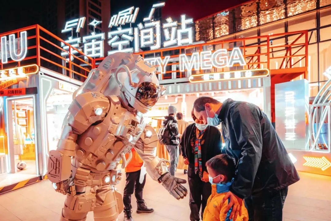 *溫州印象城MEGA開(kāi)業(yè)當(dāng)天,以溫州話諧音「宇宙人」形象出現(xiàn)的印唰廠