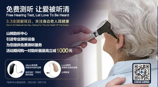 同時(shí),山姆“愛耳日”也于3月3日啟動(dòng),公眾無需辦理會(huì)員卡,也能通過線上預(yù)約后前往門店進(jìn)行專業(yè)聽力檢測(cè),還能參與專家舉辦的公益講座等活動(dòng)。