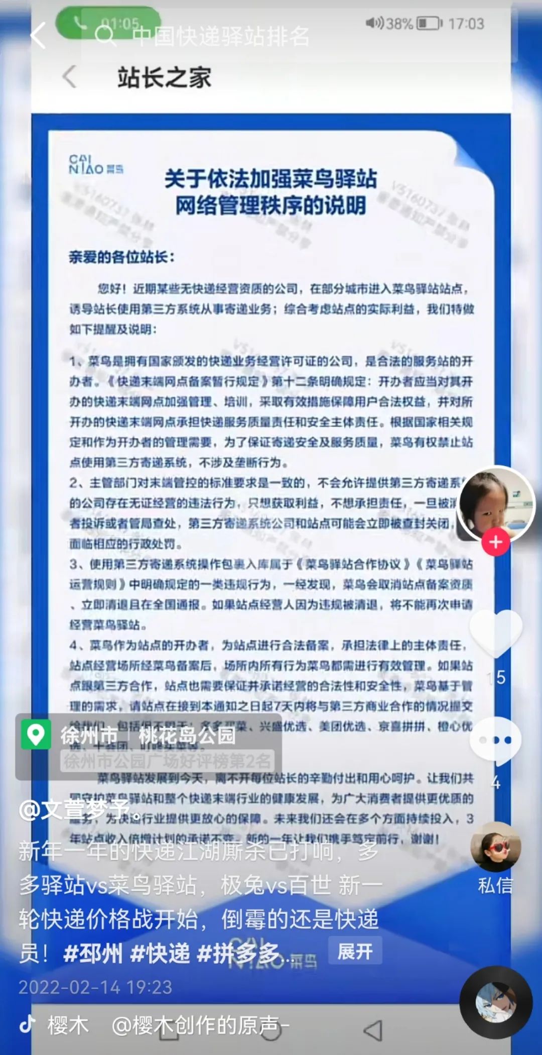 這份“謹(jǐn)慎”來源于,在這套系統(tǒng)在各地剛剛開始推廣時,就有菜鳥驛站站長收到通知,使用第三方寄遞系統(tǒng)操作包裹入庫屬于違規(guī)行為,一旦發(fā)現(xiàn)立即清退并全國通報,不能再次申請經(jīng)營。