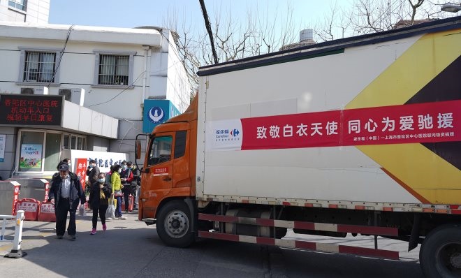 致敬白衣天使 家樂福為上海市普陀區(qū)中心醫(yī)院捐贈(zèng)物資