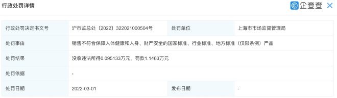 聯(lián)商快訊:企查查APP顯示,近日,天津江南布衣華卓服飾有限公司新增行政處罰信息,處罰單位為上海市市場監(jiān)督管理局,處罰事由為當(dāng)事人銷售的一款兒童服裝經(jīng)檢測繩帶要求項目不合格,處罰結(jié)果為沒收違法所得951元,罰款1.1萬余元。