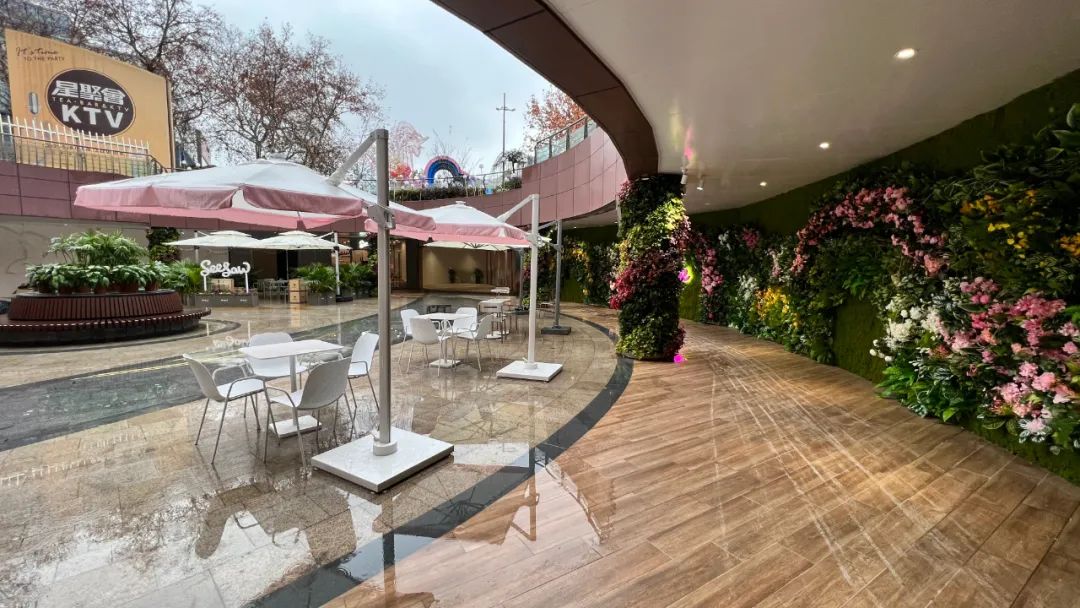 3.開放式街區(qū)與內(nèi)場(chǎng)大商業(yè)形成互補(bǔ)。在4萬㎡的開放式街區(qū),引進(jìn)酒吧、網(wǎng)紅餐飲、KTV等多種業(yè)態(tài),與內(nèi)場(chǎng)的影院、頂樓的浪漫花園形成夜間聯(lián)動(dòng),共同發(fā)力“夜經(jīng)濟(jì)”。