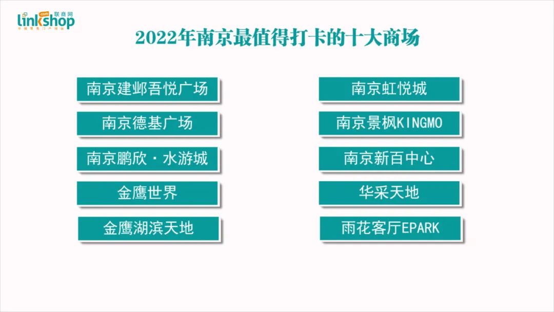 此次,《聯(lián)商網(wǎng)》商場(chǎng)打卡第六期來到了南京,并根據(jù)小紅書,大眾點(diǎn)評(píng)等平臺(tái)數(shù)據(jù),并結(jié)合實(shí)地探訪,總結(jié)了南京目前最值得打卡的十大商場(chǎng),排名不分先后,快點(diǎn)贊收藏吧。