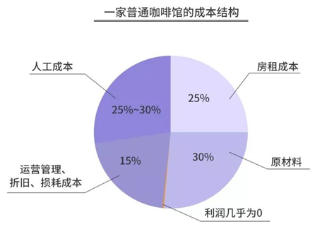 一般情況下,在一線城市開咖啡館,人工成本在25%-30%左右,房租成本25%左右,運營管理、折舊、損耗成本15%左右,原材料成本在30%左右,普通咖啡館能夠收支平衡就不錯了,如果算上老板的工資,大概率是虧損。