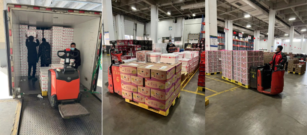 3月11日晚9點多,永輝接到新橋鎮(zhèn)政府物質(zhì)支援的緊急需求,必須在晚上12點封控管理前,將500件物質(zhì)配送到位。面對臨危受命,永輝奮勇?lián)?dāng),第一時間組織員工、協(xié)調(diào)物流資源。員工連夜趕到倉庫,裝車派發(fā)。50多公里的路程,提前30分鐘送達(dá)。