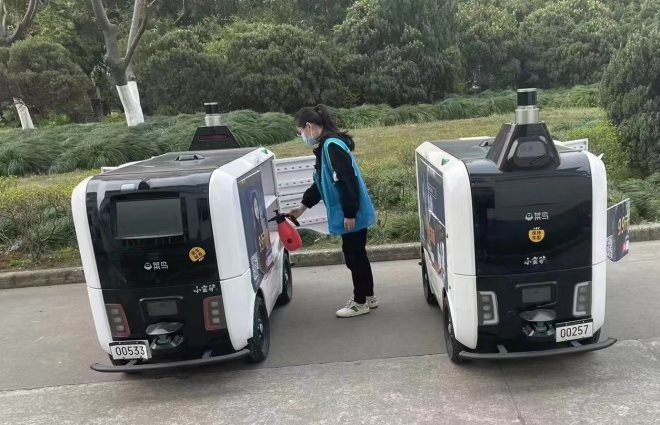 菜鳥(niǎo)驛站緊急調(diào)配無(wú)人車為高校“無(wú)接觸”送快遞