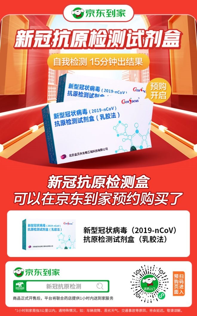 新冠抗原自測試劑盒在京東到家平臺已開啟預購