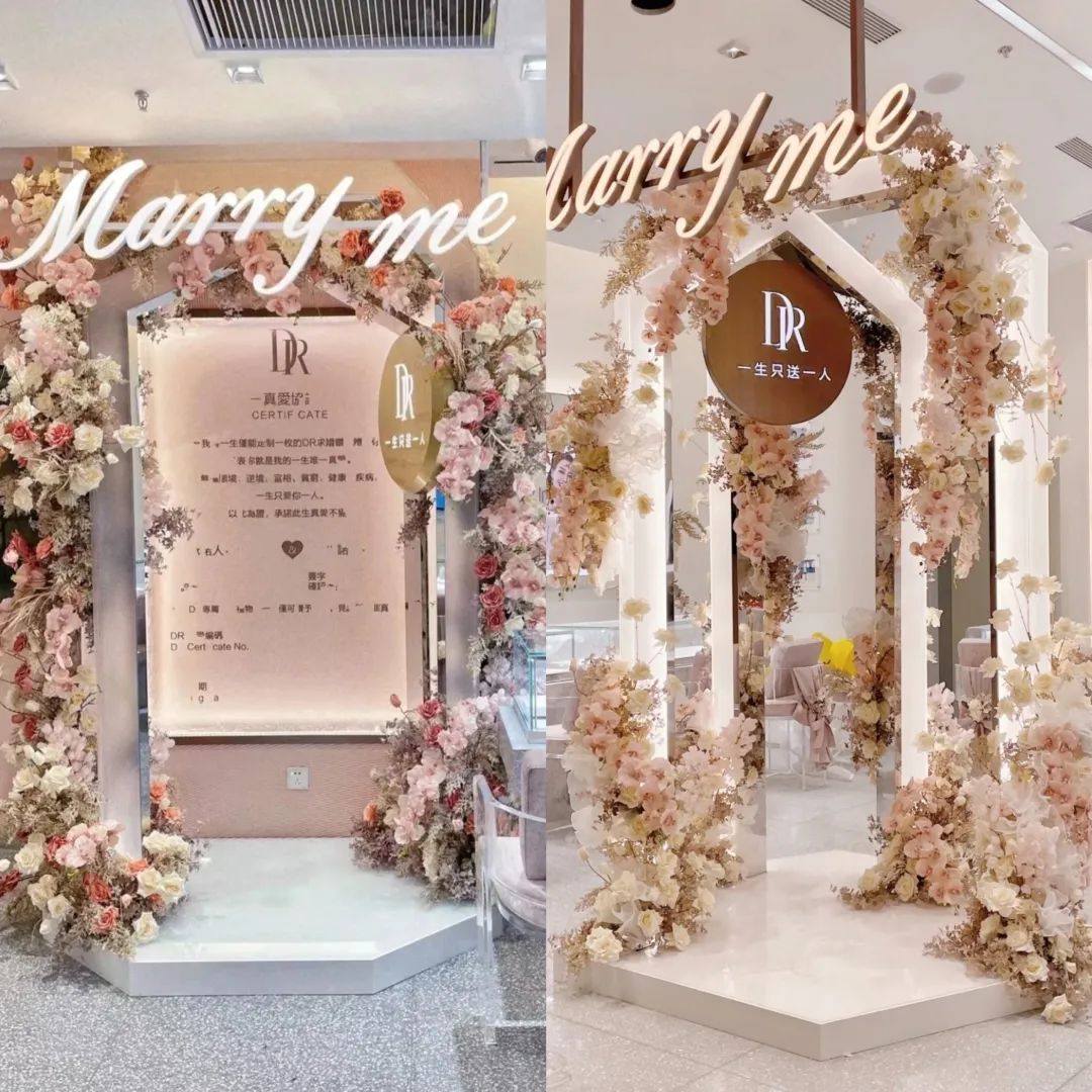 DR深諳求婚戒指與結(jié)婚戒指之間因為隔著一個民政局,價格能差一個數(shù)位的道理,而DR的門店就提前讓顧客沉浸式體驗了一把民政局登記。