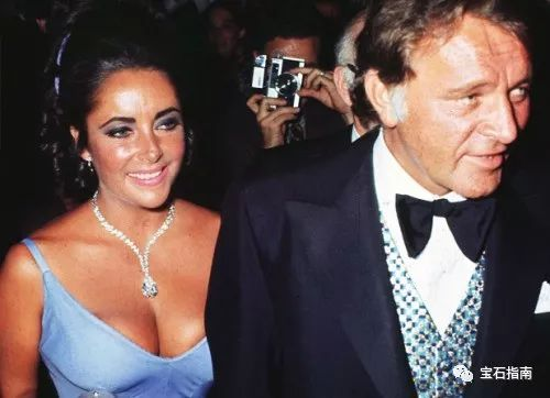 佩戴著“泰勒-伯頓之鉆”的泰勒(左)與伯頓(右)
