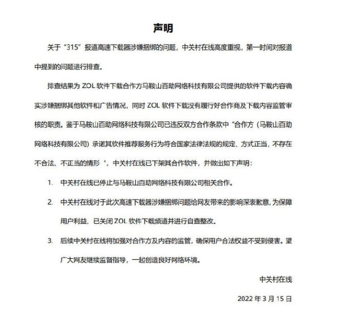 ZOL軟件下載:已第一時間對報道中提到的問題進行排查。排查結(jié)果為ZOL軟件下載合作方百助公司提供的軟件下載內(nèi)容確實涉嫌捆綁其他軟件和廣告情況,同時ZOL軟件下載沒有履行好合作商及下載內(nèi)容監(jiān)管審核的職責。