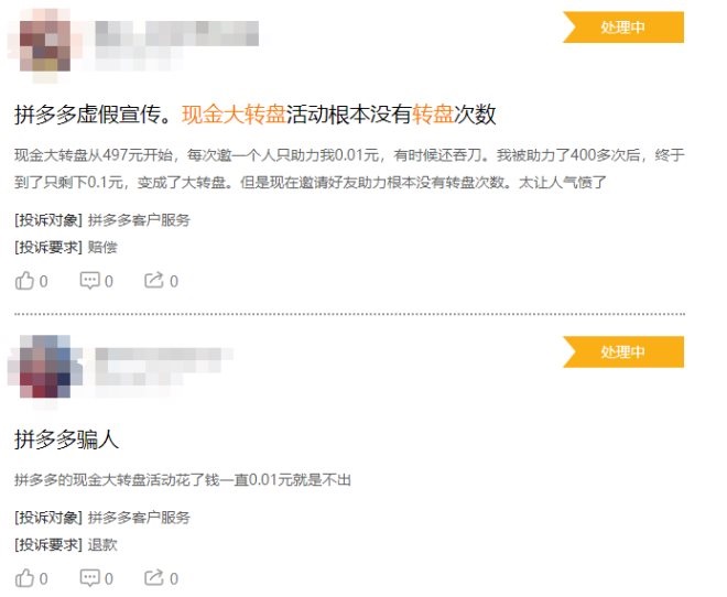 事實(shí)上,遇到同樣問(wèn)題的,并不止劉律師一人,許多博主都做過(guò)類(lèi)似的實(shí)驗(yàn),親身驗(yàn)證拼多多的類(lèi)似提現(xiàn)活動(dòng)到底有多難,社交平臺(tái)上也有不少網(wǎng)友吐槽過(guò)類(lèi)似的情況。網(wǎng)友在參與拼多多“現(xiàn)金大轉(zhuǎn)盤(pán)”活動(dòng)時(shí),眼看進(jìn)度見(jiàn)頂,拉好友獲得的獎(jiǎng)勵(lì)卻從金額變成了金幣,只差0.01金幣時(shí),拉新抽中的獎(jiǎng)勵(lì)竟變成了鉆石,之后鉆石又變成了祝福卷軸……拉人陷入無(wú)窮無(wú)盡、沒(méi)有終點(diǎn)的循環(huán)。