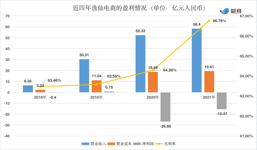 略感欣慰的是,逸仙電商全年毛利率同比增長2.5個(gè)百分點(diǎn)至66.8%。但在虧損層面,逸仙電商2021年全年凈虧損為15.5億元,同比收窄42.5%。其中,第四季度凈虧損4.75億元,同比縮窄69%。
