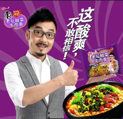統(tǒng)一剛聘請汪涵為代言人,康師傅就力邀姚晨來代言;統(tǒng)一稱自己銷量第一,康師傅便強(qiáng)調(diào)產(chǎn)品選用地道陳壇酸菜。在當(dāng)年,統(tǒng)一的廣告語:“有人模仿我的臉,有人模仿我的面,模仿的再像也不是統(tǒng)一老壇!”矛頭更是直指康師傅抄襲。