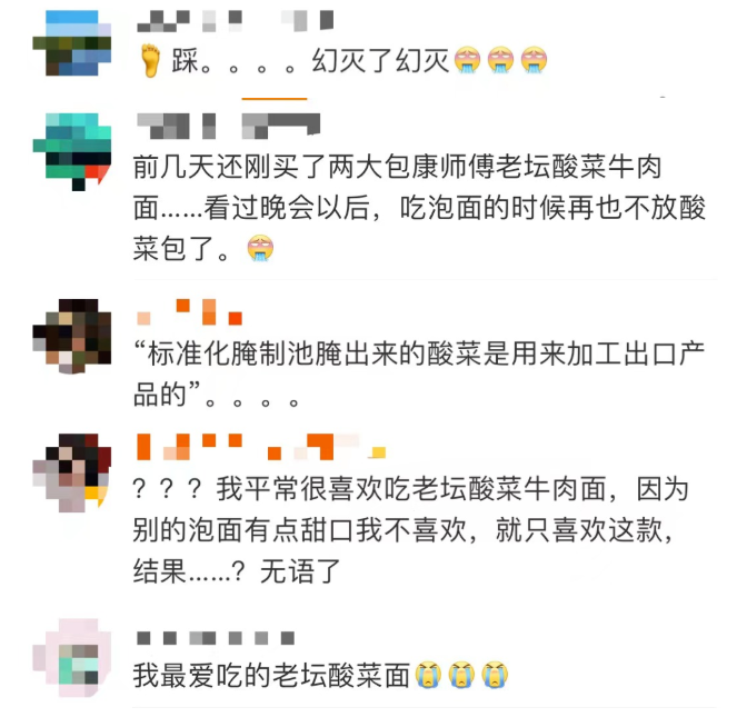 “土坑酸菜”事件一出,康師傅、統(tǒng)一等方便食品品牌首當其沖,康師傅還下架了所有酸菜產(chǎn)品。