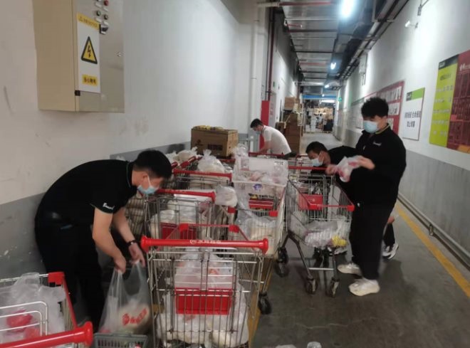 疫情以來,超市人流量明顯減少,轉為線上銷售單量激增,為做好線上配送工作,泉州永輝超市各門店,從商品調整、人力調配、售后保障等各方面全力支持電商運營,永輝中駿世界城店是豐澤區(qū)封控小區(qū)保供門店,還增加社區(qū)GO次日達服務,滿足封控區(qū)顧客需求。