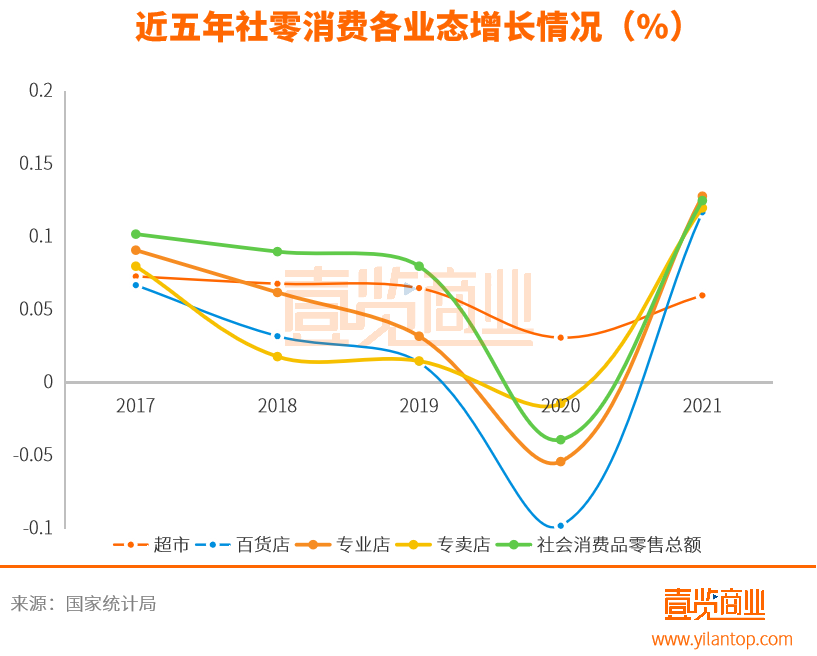 據(jù)國家統(tǒng)計局顯示,在2017年-2020年間,百貨、專業(yè)店等零售業(yè)態(tài)的零售額增長率一直低于社零消費總額增長率。2021年,大多零售業(yè)態(tài)的零售額增長率才大抵與社零售消費總額增長率持平。事實上,由于經(jīng)營模式落后,成本持續(xù)上漲,新興業(yè)態(tài)涌現(xiàn)、網(wǎng)絡(luò)購物,再加上疫情沖擊等多因素的影響,不少零售企業(yè)在近些年一直出現(xiàn)效益下降,關(guān)店止損的情況。
