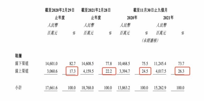 值得注意的是,截至2021年11月30日止九個月,直播銷售額占線上銷售額約30%。
