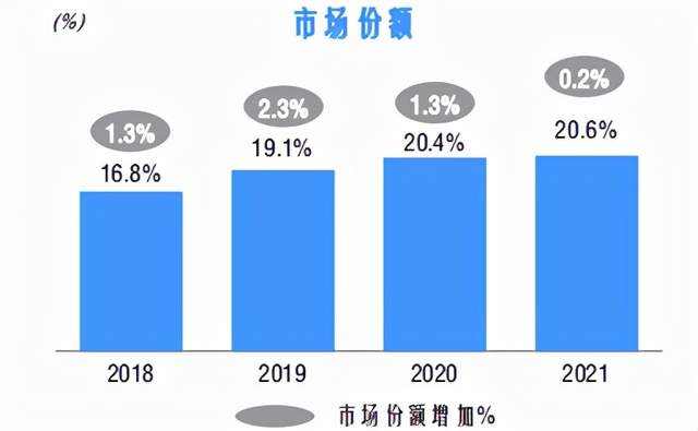 但與此同時(shí),可以明顯看到中通市場(chǎng)份額增長(zhǎng)的放緩:中通市場(chǎng)份額增長(zhǎng)四年來(lái)第一次跌至1%以下,2021年市場(chǎng)份額增長(zhǎng)0.2%。