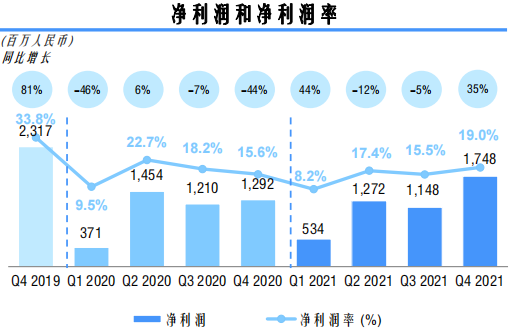 根據(jù)財(cái)報(bào),Q4中通調(diào)整后凈利潤(rùn)為人民幣17.45億元,較2020年同期的12.9億元增長(zhǎng)35.2%,較同年三季度的11.48億元環(huán)比上漲52.0%。同時(shí),結(jié)束了連續(xù)兩個(gè)季度增收不增利的局面。