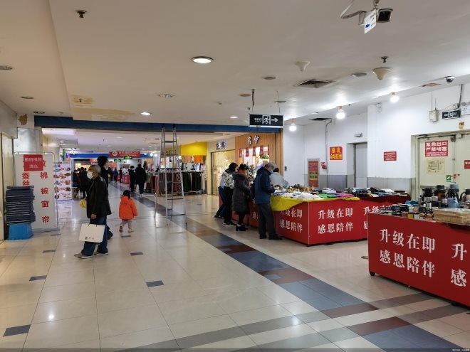 而從家樂福負二層可以直通中關(guān)村廣場的百貨、針織等業(yè)態(tài)區(qū)域,記者在現(xiàn)場看到,該區(qū)域到處都貼著“中關(guān)村廣場改造升級在即”的字樣,各大商戶門口也標(biāo)著“撤店清倉”“打折促銷”等標(biāo)語。其中一家兒童服裝店主告訴記者,商戶與商場的租約也是這個月底到期,所以會伴隨3月31日中關(guān)村廣場閉店而關(guān)門。