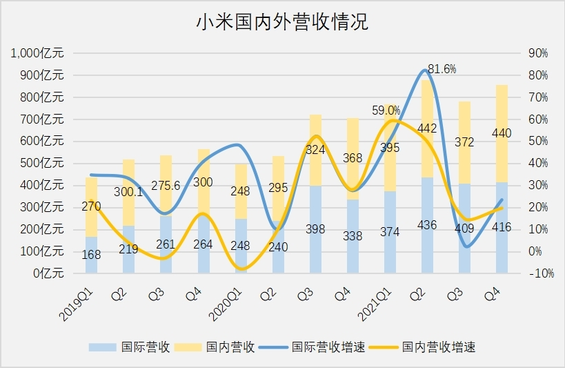 去年全年,小米國際營收為1636億元,同比增長33.7%。