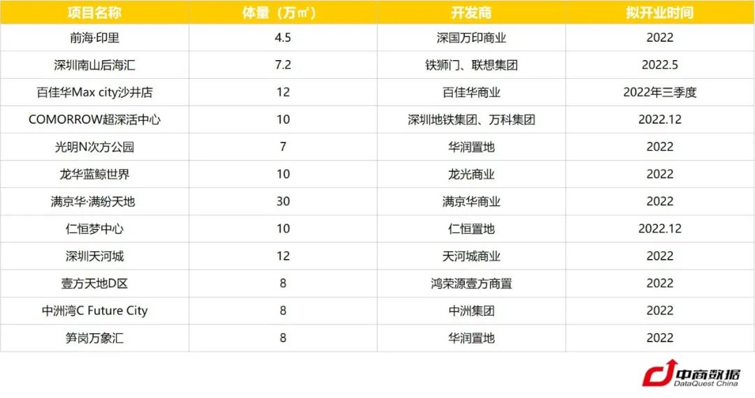 后海匯、中洲灣C Future City、COMORROW 超深活中心、仁恒夢中心等重磅項目2022年擬開業(yè)。